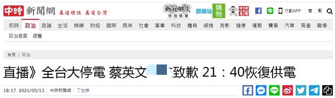 蔡英文今晚就全台大停電道歉,島內網友:這個大騙子!