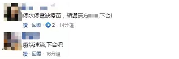 更有網友表示讓蔡英文下台:“停水停電缺疫苗,領導無方應該下台”。“謊話連篇,下台吧”。↓