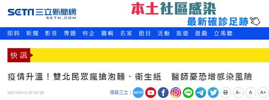 【環球網報道 記者趙友平】台灣“三立新聞網”等台媒消息,島內疫情升温,台灣新北、台北等地12日下午到晚間出現搶購潮,民眾瘋搶泡麪、衞生紙等生活必需品。