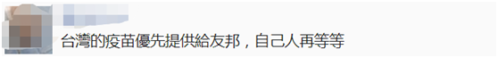 對此,有島內網友諷刺民進黨當局:台灣的疫苗優先提供給“友邦”,自己人再等等。↓