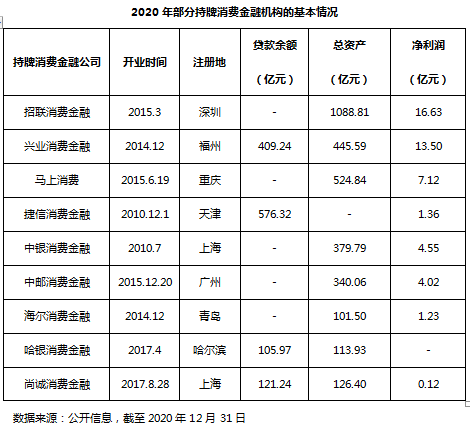 2020年22家消費金融公司的業績報告相繼出爐,招聯消費金融、興業消費金融和馬上消費位列前三,成為頭部持牌消費金融機構。部分消費金融公司在2020年出現虧損的現象,如蘇寧消費金融和北京陽光消費金融等,其中後者多半是因為剛開業處於前期投入階段。