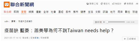 《中國時報》17日發表評論稱,現在疫苗最多的國家就是美國和德國,印度河裏漂滿因疫情氾濫而死亡的屍體,印度最麻吉的朋友美國,卻寧願把疫苗擺在倉庫裏也不願施捨一點給印度;台灣呢?花大把鈔票向美國買了一大堆武器,可以救命的疫苗卻是一劑也沒有;台灣當初送德國那麼多口罩,德國回饋給台灣什麼?如真像蕭美琴所説,都送給了“邦交國”,“那就是誤國誤民,不顧百姓死活”!