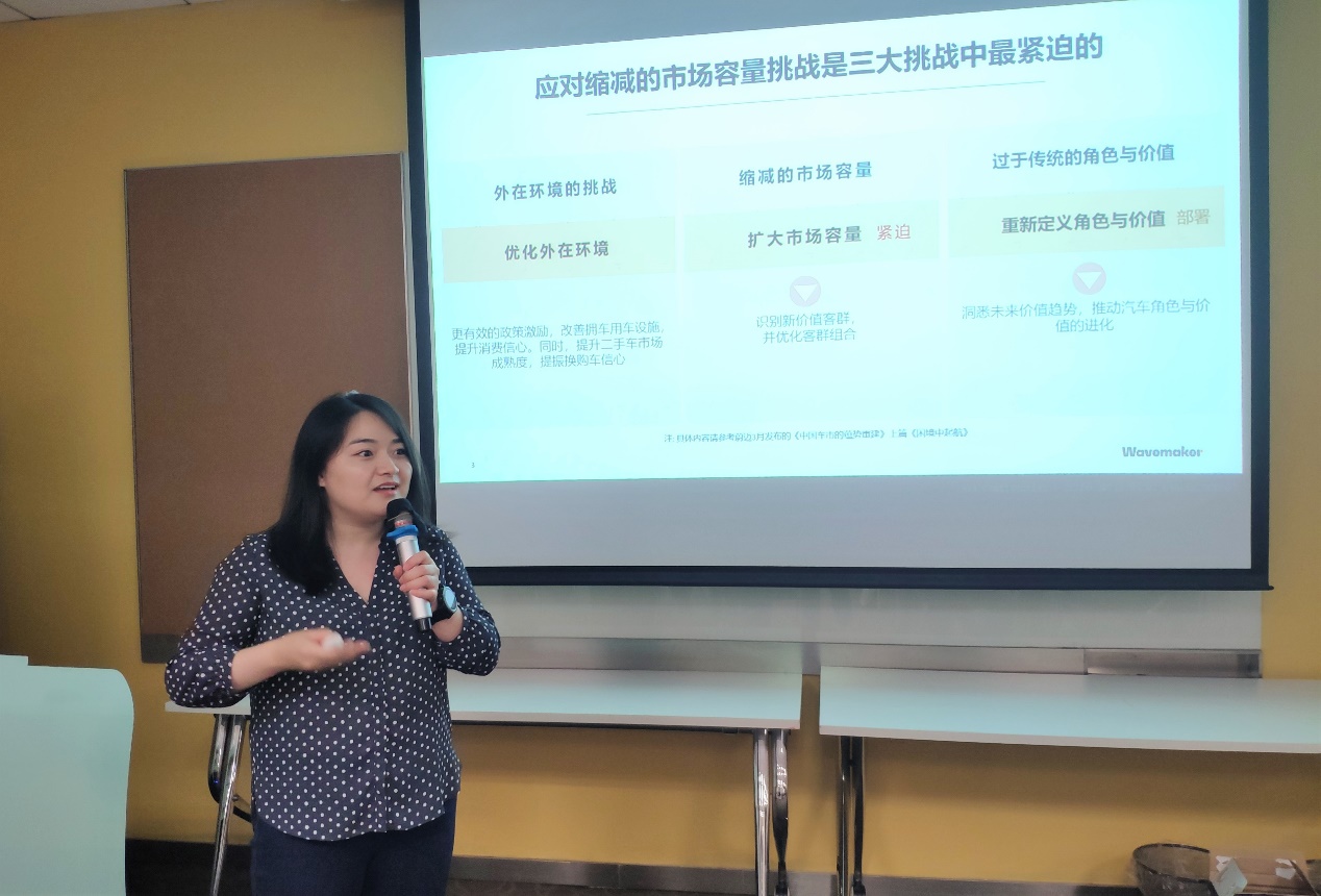羣邑-蔚邁增長策略總監孫曉寧則從《攻心Z世代-成為他們嚮往的未來品牌》層面分享瞭如何打造Z世代的汽車品牌。存量廝殺下,汽車市場加速洗牌,銷量前20品牌市場份額已超80%,近50%的品牌已出局或面臨出局的風險。應對縮減的市場容量挑戰,如何識別新價值客羣,優化客羣組合是當下車企面臨的核心難題。相較於前輩們,Z世代年輕人擁有更強的購買決策力,也展現出了更積極的消費慾望和追求。Z世代對汽車產品的期許已經升級,從功能性出行轉變為對智能出行、駕乘樂趣和個性化的追求,車企應努力從用户視角出發提供諸多新車型及智能解決方案,滿足Z世代精神與生活方式的雙重需求。營銷4.0時代,消費者期待更多參與共創,創造屬於自己的獨特體驗。這就要求車企跳出傳統汽車產品營銷思維,圍繞用户圈層興趣打造沉浸式場景,通過高興趣關聯內容共創與用户形成強共鳴,真正做Z世代“嚮往的生活方式”品牌。