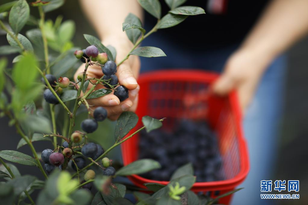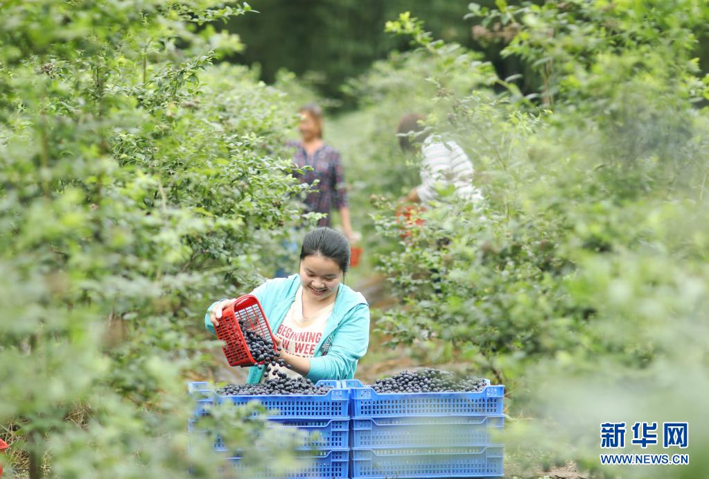 5月16日,村民在貴州省赤水市天台鎮星光村藍莓種植基地採摘藍莓。初夏時節,各地農民抓緊農時,在田間插秧、施肥,或在大棚裏管護、收穫農作物,田間地頭呈現出一派繁忙景象。新華社發(王長育 攝)