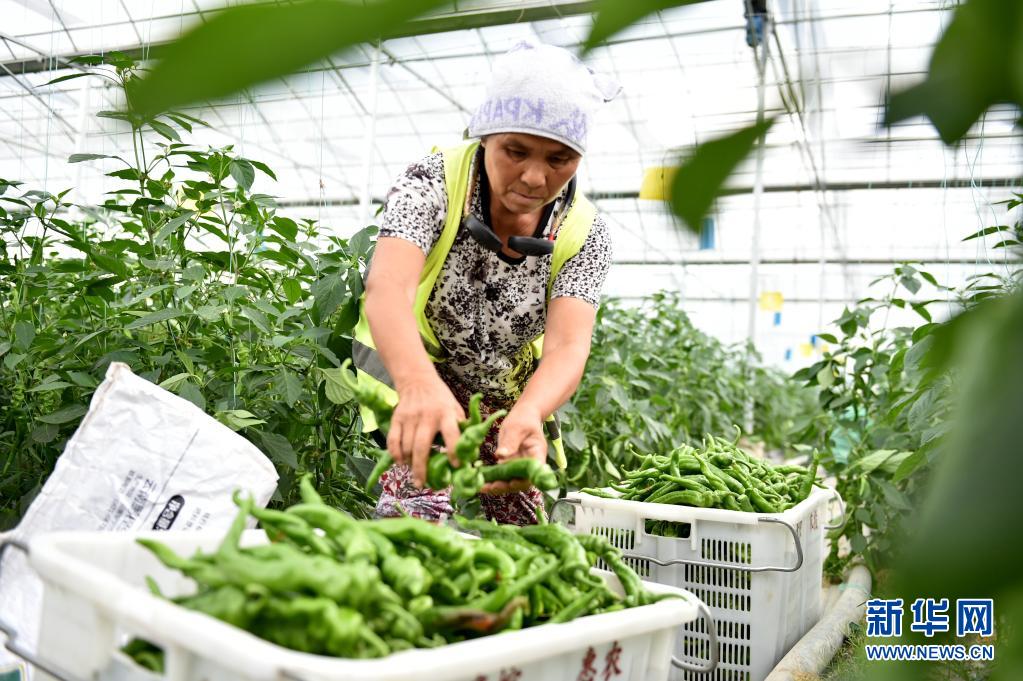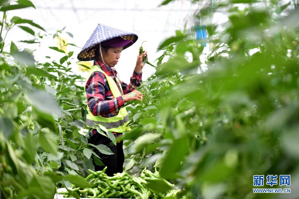 5月16日,村民在貴州省黔東南苗族侗族自治州榕江縣車江壩區一蔬菜大棚裏採摘辣椒。初夏時節,各地農民抓緊農時,在田間插秧、施肥,或在大棚裏管護、收穫農作物,田間地頭呈現出一派繁忙景象。新華社發(王炳真 攝)
