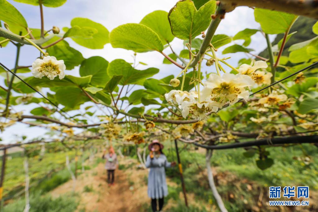5月16日,河北唐山遵化市新店子鎮君子口村的農民在獼猴桃果園勞作。初夏時節,各地農民抓緊農時,在田間插秧、施肥,或在大棚裏管護、收穫農作物,田間地頭呈現出一派繁忙景象。新華社發(劉滿倉 攝)