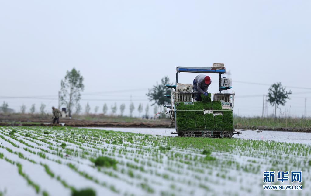 5月16日,河北省唐山市海港經濟開發區王灘鎮的農民駕駛插秧機在田間進行水稻插秧。初夏時節,各地農民抓緊農時,在田間插秧、施肥,或在大棚裏管護、收穫農作物,田間地頭呈現出一派繁忙景象。新華社發(李磊 攝)