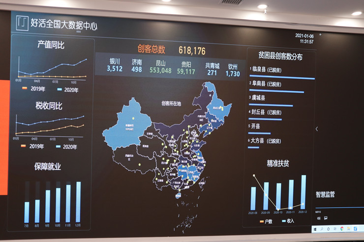 圍繞打造立足貴陽、服務貴州、輻射西南的靈活就業服務平台這一目標,好活(貴州)網絡科技有限公司以靈活就業綜合服務為核心,發揮平台聚集效應吸引帶動新業態、新經濟企業匯聚,落地不到一年,雲平台營業額超16億元,納税近5000萬,收入月均增速始終保持在20%左右,預計2021年將實現產值40億。