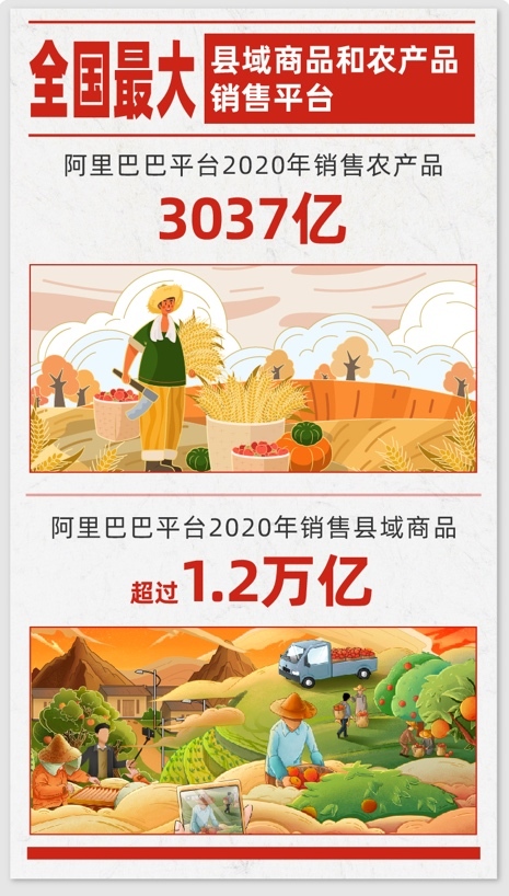 2017年12月,阿里巴巴成立脱貧基金,將助力鄉村確定為公司最重要的戰略之一,從教育、健康、女性、生態和電商五大脱貧方向入手,探索可持續、可參與、可借鑑的鄉村發展路徑。最新數據也顯示,2020年,阿里平台農產品銷售額3037億元,全國縣域商品銷售額更超1.2萬億元,持續穩居“最大農產品銷售平台”和“最大縣域商品銷售平台”位置,不僅讓鄉村商品賣的多,更讓鄉村特產賣出好品牌、好價格,成為推動農村產業發展的有效助力之一。