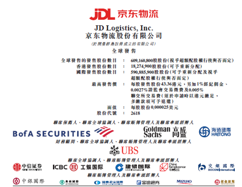 京東物流最高發售價43.36港元/股,將於5月28日正式上市