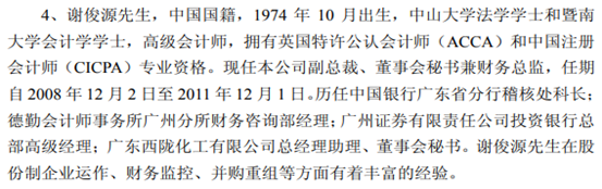 西隴化工是A股上市公司,根據該公司此前發佈的《招股説明書》和2011年年報,其中披露西隴化工上市前也即截止到2011年5月的財務總監為謝俊源先生,同時披露黃水榮先生任西隴化工財務中心總經理職務,也即黃水榮先生並未兼任財務中心總經理、財務總監兩個職務;此後在2011年年報中披露財務總監楊明貴先生的任期是2011年12月13日開始的。從上述信息來看,黃水榮先生並未擔任西隴化工財務總監職務,這與迪阿股份的信息披露存在差異。