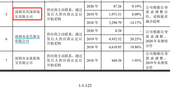 根據招股書第125頁披露的主要委外加工商的合作情況顯示,迪阿股份的供應商之一為“深圳市興深祥珠寶有限公司”,2018年採購金額高達3290.79萬元;公開資料顯示,“深圳市興深祥珠name="_GoBack">寶有限公司”成立於2016年11月,2018年末的實繳資本為零、員工社保繳納人數為零。