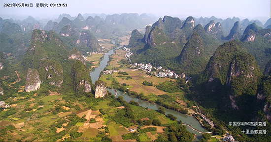 本次直播活動藉助中國移動5G+千里眼視頻傳輸能力,充分運用了5G網絡“低時延、大帶寬、廣連接”的特性,結合全景高清視頻、5G無人機、遊船等渠道,將灕江美景更清晰、更流暢地呈現在屏幕前,實現了不同時段、不同角度即時欣賞“江作青羅帶,山如碧玉簪”的景色,豐富了五一黃金週的旅遊體驗。