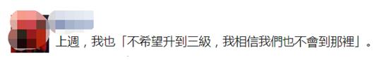 對此,有島內網友諷刺説,上週,我也“不希望升到三級,我相信我們也不會到那裏”。↓