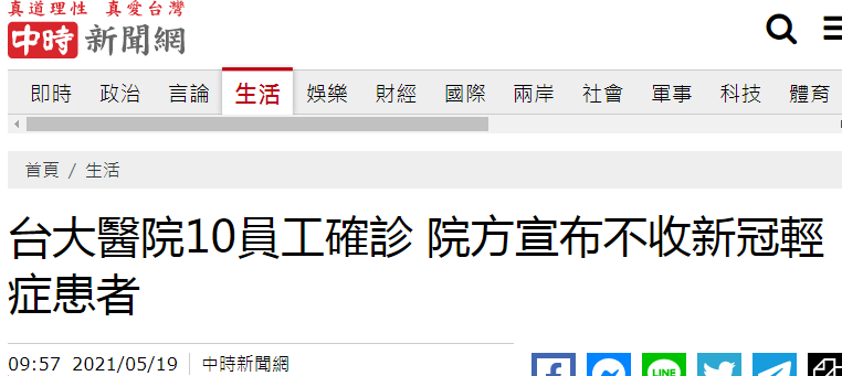 台媒:台大醫院10名員工確診,院方宣佈不收新冠輕症患者