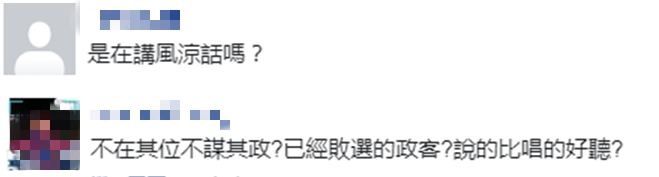 “風涼話”,“已經敗選的政客?説的比唱的好聽?”有島內網友在台媒相關報道評論區留言諷刺。↓