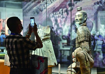 展出的一尊秦始皇陵兵馬俑坑出土的秦俑。