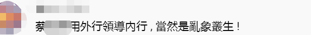 還有網友説,蔡英文用外行領導內行,當然是亂象叢生!↓