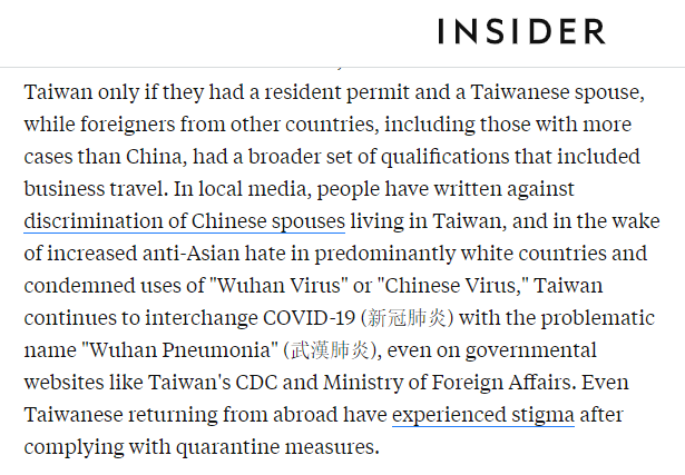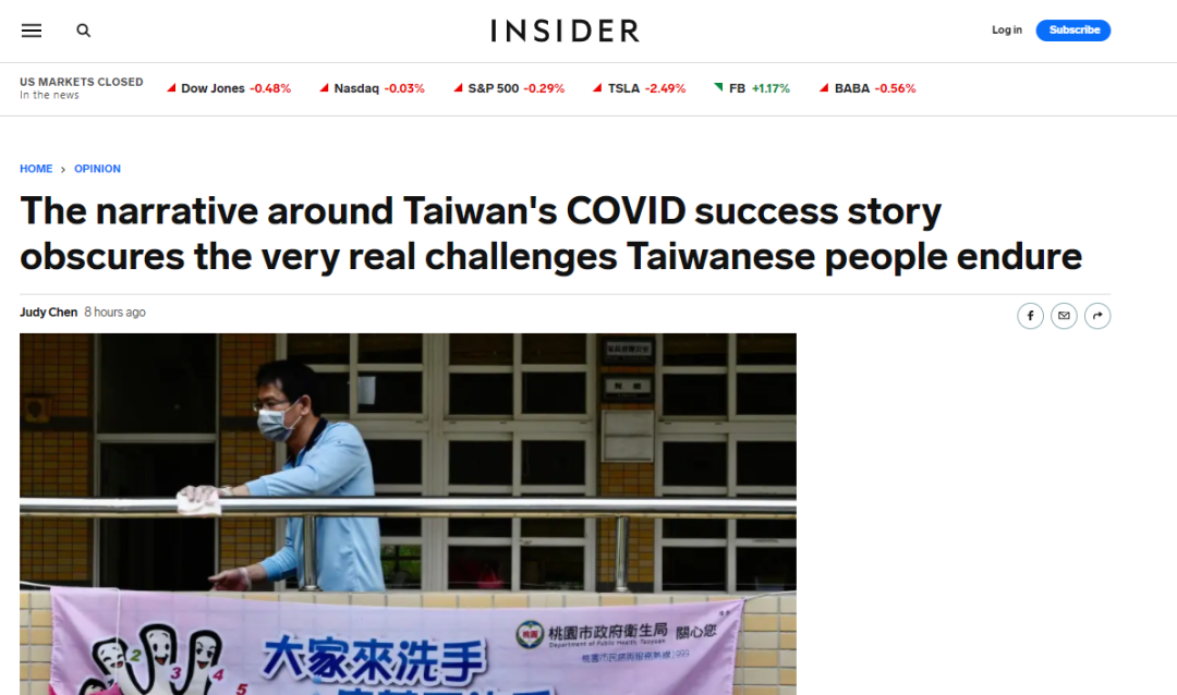 美國《商業內幕》網站今天就刊登了一篇題為“關於台灣抗疫很成功的那些故事和描述,會模糊掉台灣人真正需要面對的挑戰”的文章。作者是一名生活在中國台灣的自由撰稿人。