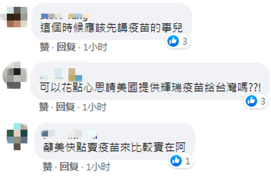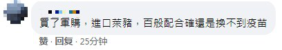還有網友無奈表示,“買了軍購,進口萊豬,百般配合卻還是換不到疫苗。”