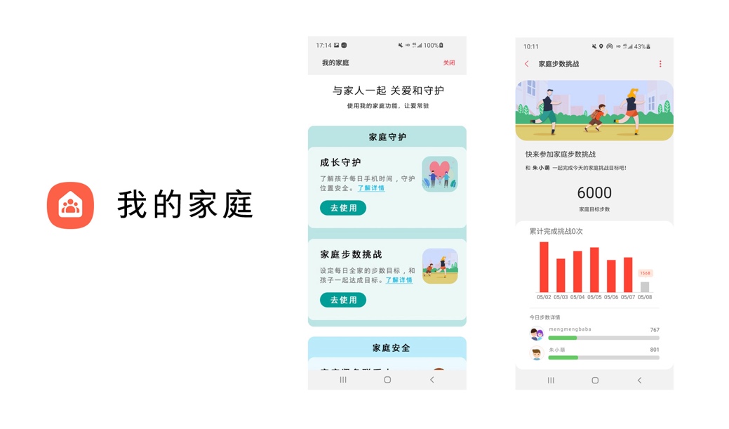 功能方面,三星Galaxy F52 5G的“我的家庭”功能,讓用户享受智能化的家庭生活。家長可使用我的家庭中的“成長守護”服務遠程查看孩子手機的使用情況,培養孩子良好用機習慣,還能設立“家庭步數目標”。此外,其還擁有便捷的到家服務和家人生日提醒等功能。