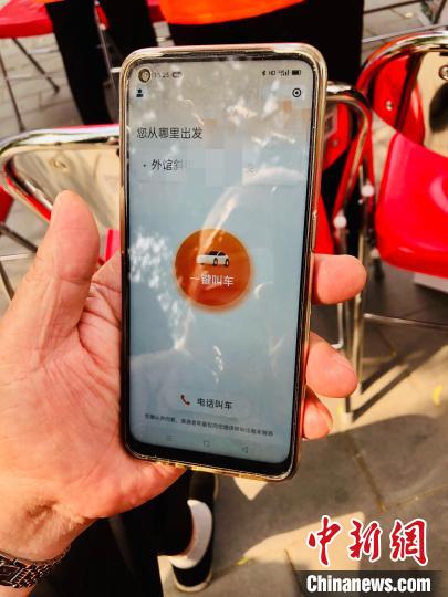一位老人展示他剛下載的“一鍵叫車”頁面。 王祖敏 攝