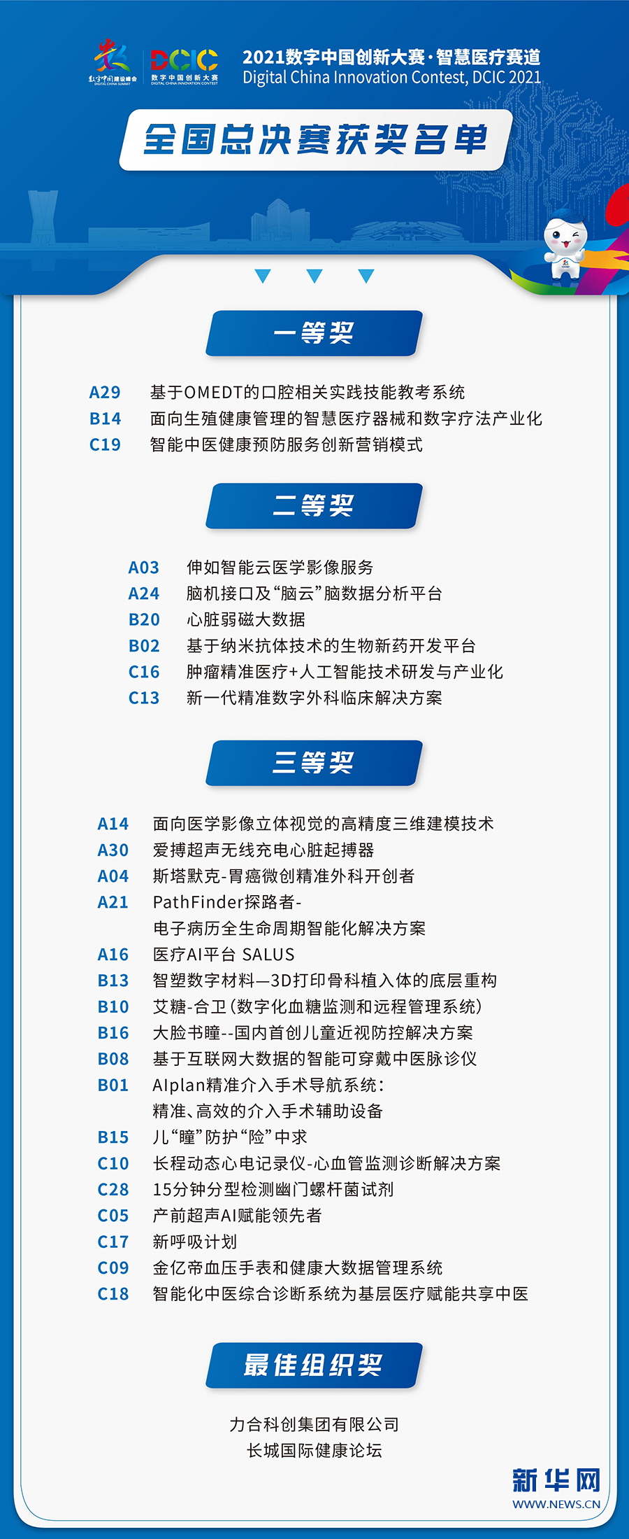 2021數字中國創新大賽智慧醫療賽道獲獎名單。新華網發(福州數據技術研究院供圖)