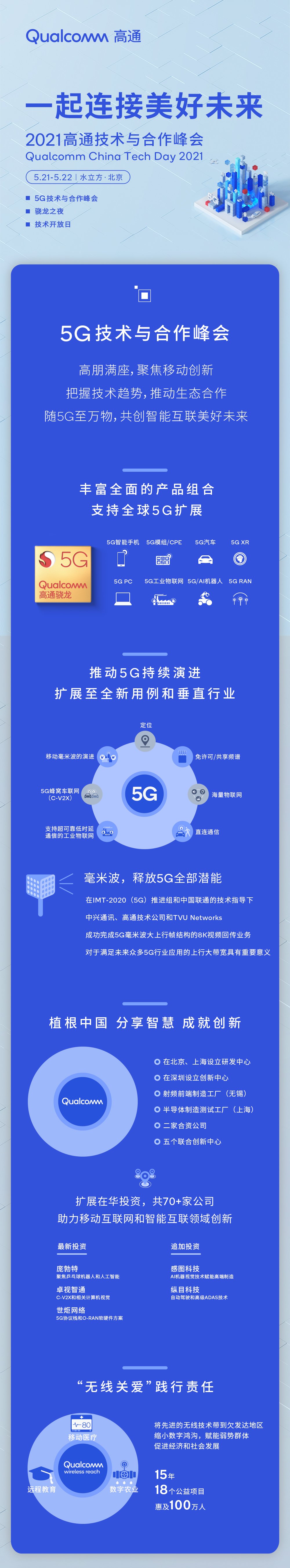 5月21日,高通公司在水立方召開2021高通技術與合作峯會,以大咖分享和科技博覽會的形式向公眾展示其如何踐行此次峯會的主題——“一起連接美好未來”。