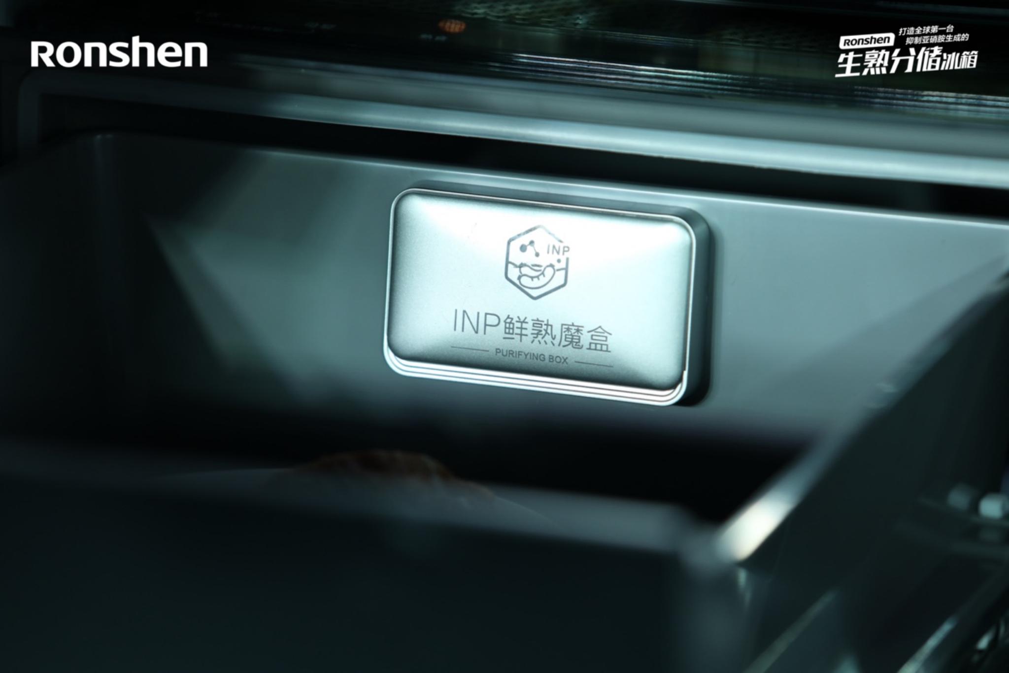 為了解決上述問題,容聲生熟分儲冰箱打造了生鮮、熟食兩個專區。在生鮮區的箱體頂端採用精密的頂置感温探頭,可確保精準的艙室温控。容聲生熟分儲冰箱可以將生鮮區的温度控制在了 -3℃,在這樣的温度下,生肉在表層會產生淺層冰晶,同時也可以將生肉最佳儲存週期延長至9天。熟食區,創新性地採用了 INP 熟食鮮儲技術,利用感温探頭精準控温;密封膠圈配合阻尼自復位導軌,絕對密封不串味;箱體採用抑菌玻璃,並增加除菌淨味模塊,為除菌上了"雙保險"。經過中國海洋大學的檢測認證,在容聲生熟分儲冰箱中存放的熟食,整體亞硝胺生成量較普通冰箱降低了68.87%以上。