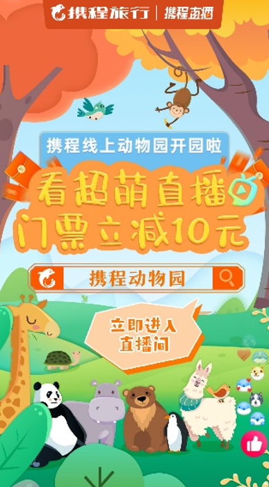 5月25日,攜程上線 “線上動物園”特賣直播頻道,首期直播將攜手南通森林野生動物園、淹城野生動物世界、上海海昌海洋公園、北京海洋館等各地知名機構。