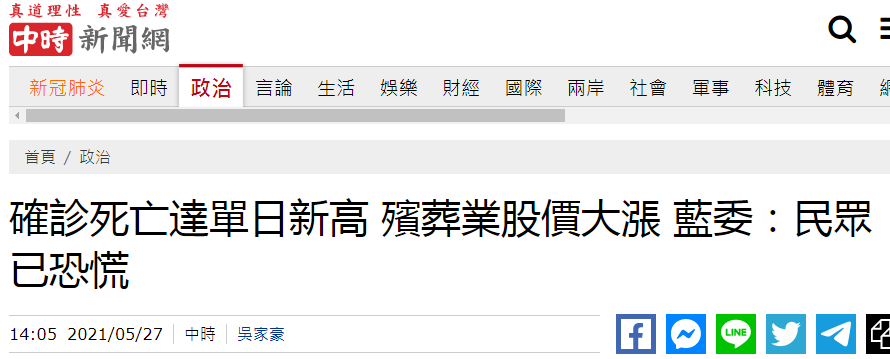 台灣新冠肺炎確診死亡病例增加,兩家殯葬業公司股價漲停,“藍委”:民眾已恐慌