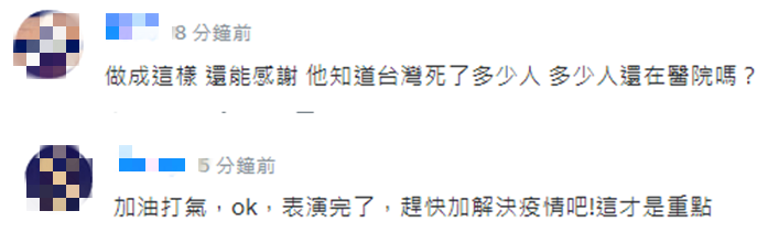 而對於蔡英文的“感謝”,也有不少網友提出質疑,“做成這樣還能感謝?”“加油打氣,OK,表演完了,趕快解決疫情吧!這才是重點。”