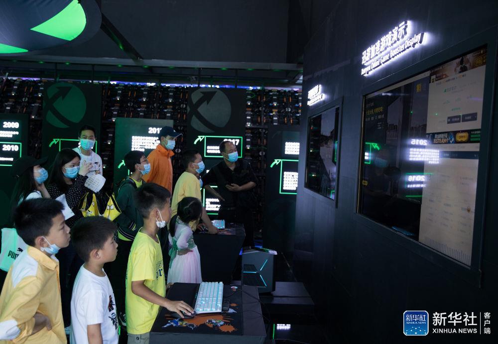 5月27日,小朋友在博覽會上體驗一款數據流通大作戰遊戲。