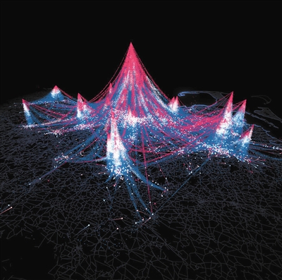 這一研究同時發現,一座城市所有地點的訪問人數相對於訪問頻率和移動距離的減少遵循一個可預測的模式。研究人員在此基礎上總結出了一種普適的人羣移動規律,並能通過該規律模擬和重複人口移動的時間和空間規模。