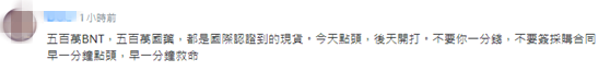 還有網友稱,“五百萬BNT,五百萬國藥,都是國際認證到的現貨。今天點頭,後天開打。不要你一分錢,不要籤採購合同,早一分鐘點頭,早一分鐘救命。”
