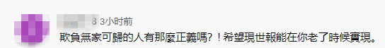 “欺負無家可歸的人有那麼正義嗎?希望現世報能在你老了的時候實現。”