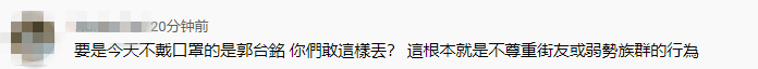 “要是今天不戴口罩的是郭台銘,你們敢這樣丟?根本就是不尊重街友或弱勢族羣的行為。”