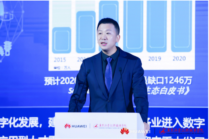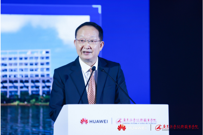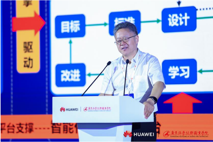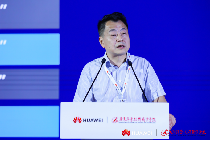廣東科學技術職業學院黨委副書記、校長李龍圖分享了廣科院在探索高職院校數字化發展領域的實踐經驗。他表示,目前廣科院已與華為攜手在四大領域探索高職發展之道。具體來説,一是通過多方合作共建鯤鵬數字學院、合力打造“雲中廣科”智慧校園、聯合創建“職業教育大數據研究院”,形成校企合作生態圈,探索出產教融合共育人才新模式;二是以專業羣服務國家戰略,成立鯤鵬數字學院,構建鯤鵬產業生態人才培養體系和雲中實訓智慧教學新模式;三是運用華為雲技術建設智慧校園,助推校園數據治理落地的同時,引領高職院校攜手打造智慧治理新生態;四是攜手華為公司、教育行業領先企業和單位,共同成立雲中高職研究院,助力數字化產教融合的機制體制創新。未來廣科院將不斷深化與華為的合作,以“邁向世界一流”的新戰略、“多方合作,推動產業與城市升級”的新模式,以及建設“雲中高職”的新成果,來打造數字化產教融合新平台,探索智慧化高職教育新形態。