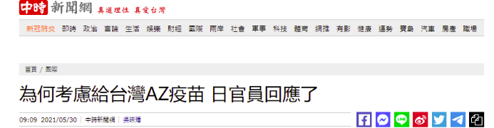 中時新聞網還稱,日本政府21日才批准AZ疫苗的緊急使用授權,但礙於歐洲等出現血栓的極罕見副作用案例,目前日本的方針是不在國內使用AZ疫苗。