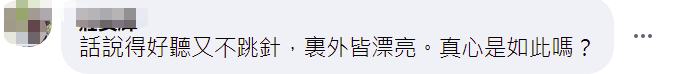 有網友説:“話説得好聽又不跳針(説話辭不達意),裏外皆漂亮。真心是如此嗎?”↓