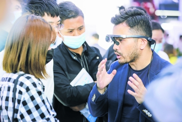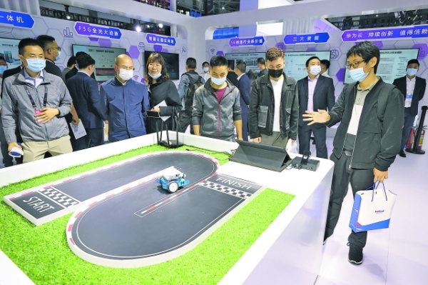 華為展台的科技前沿產品吸引觀眾駐足瞭解。
