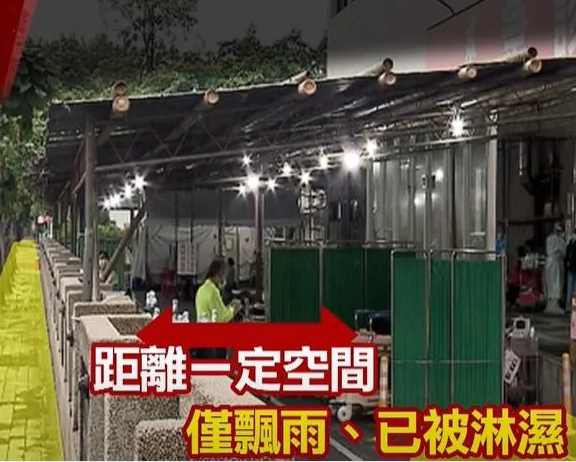 據台媒報道,台北一名張姓女子開車經過台北醫院急診室外時,發現許多病患都躺在臨時棚架下的病牀上休息。根據現場視頻,雖然病牀跟病牀間有以活動簾隔開,但臨時棚架僅由簡易竹子搭建,距離路邊有一定空間,當時飄小雨就被淋濕,地面也有積水。
