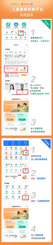 有需要的患兒家長可以登錄醫鹿APP,進入“兒科中心”中的“育兒錦囊”,點擊“為重疾兒童點亮一束光”專題頁面尋求幫助;或者進入支付寶醫療健康頻道,選擇“更多服務”中的“兒童重疾救助”。6月1日-7日期間,在醫鹿APP和支付寶搜索“兒童重疾救助”,即可進入專題頁面接受知名醫療機構的專家義診。
