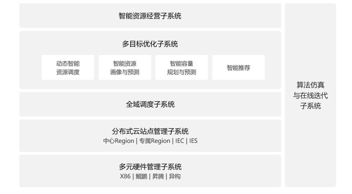 為實現萬級規模分佈式雲站點的統一管控,真正做到客户視角“一朵雲”,華為雲在技術上提早佈局,於2019年發佈了國內首個分佈式雲操作系統——華為雲瑤光,實現全域資源供給極優,多樣性算力使用極簡。技術架構層面,瑤光包含六大關鍵子系統: