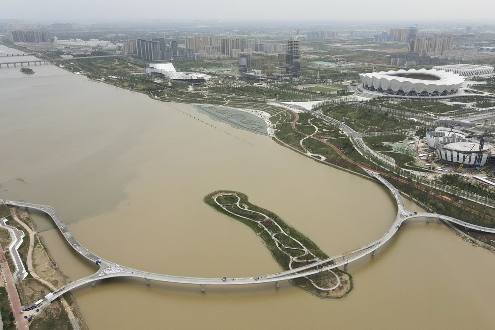 西安渭河城市運動公園一景(2019年7月5日攝,無人機照片)。