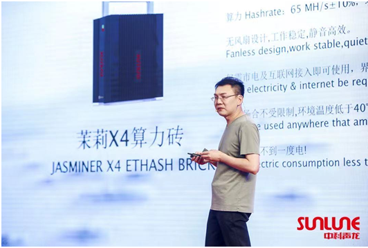 代號為Jasminer X4(中文:茉莉X4)的黑色鋁質磚塊,正式基於以上芯片開發的以太坊經典區塊鏈算力磚產品,其典型特徵在於無風扇,這帶來了極大的好處,可以放在家裏,客廳裏,卧室裏,也可以放在辦公室,只需接上電,連上網,使用非常“傻瓜”,即便是在40度的環境下也可以長期連續工作,每天耗電不到一度。不同於一般顯卡需要插在台式機電腦插槽裏,開機聯網才能提供算力,此款磚塊使用非常簡潔,雖重達5公斤,但不易挪動,十分沉穩;考慮到使用安全,稜角處用塑料做了必要的包裹。“中科聲龍將向全球發售這款算力磚產品,為以太坊經典區塊鏈提供全球分佈式算力。同時也有必要説明,它也可以為全球第一大公有區塊鏈以太坊提供分佈式算力。”汪福全表示。
