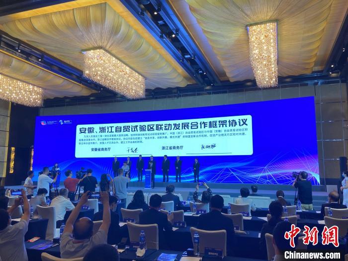記者現場獲悉,長三角三省一市在共同推進數字化改革、長三角自貿試驗區聯動發展合作、長三角境內外園區和開發區聯動合作方面取得了積極成效。安徽、浙江自貿試驗區聯動發展合作框架協議;安徽渦陽-浙江平湖經濟技術開發區合作項目;杭州經濟技術開發區與中柬農業園合作項目等8個合作項目於現場簽約。