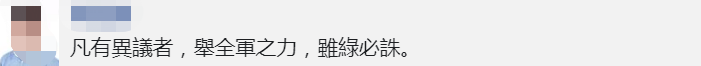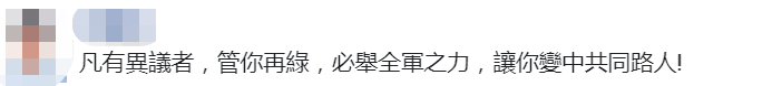 有網友稱,凡有異議者,民進黨“管你再綠,必舉全軍之力,讓你變中共同路人!”↓