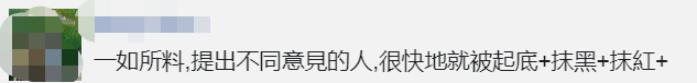 也有網友説,一如所料,提出不同意見的人,很快地就會被“起底+抹黑+抹紅”↓