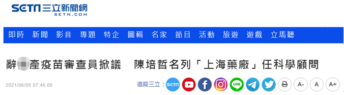 台灣“新頭殼”則使用了“被抓包”字眼,報道聲稱,陳培哲被抓包在上海摯盟醫藥科技公司擔任科學顧問,目前雖不清楚該公司是否從事新冠肺炎的疫苗研發,但已引發爭議。